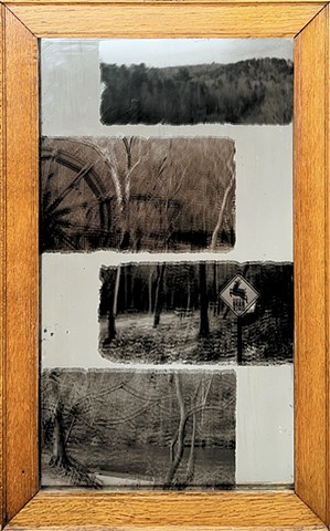 These ideas are represented through photographs of the Appalachian landscape and rustic architecture. The images focus on stillness and atmosphere, allowing the viewers to reflect on the calm but also dark photographs. These photographs put on the mirrors allow the viewer to be the person in the environment shown. This series invites viewers to look closely at familiar landscapes and consider the emotions, histories, and contradictions they hold. By holding beauty and tension in the same frame, the work offers a reflection on home as something deeply felt, unresolved, and continually shaping who we are.